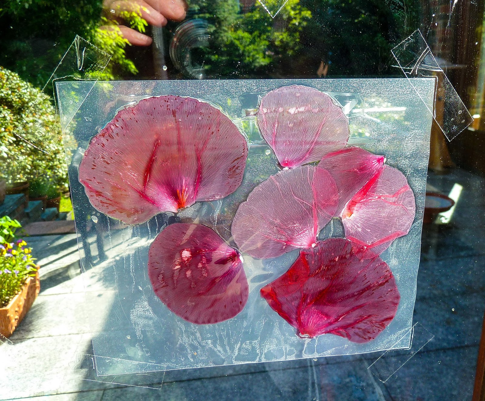 When we picked different blades of grass to make a sun catcher from them, we could not resist to pick some poppy flowers as well.